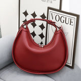 Upgrade your handbag collection with this retro-inspired saddle handbag. Its unique halfmoon shape adds a touch of vintage charm, while the comfortable fit under your arm makes it a practical and stylish choice. The perfect addition to any outfit, this handbag is both cute and functional.